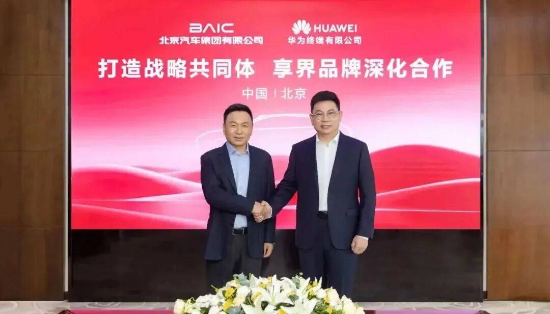 北汽集团官方报道:集团党委书记、董事长张建勇与华为常务董事、终端 BG 董事长余承东在京联合宣布,双方合作正式升级为“车企 + 华为科技全生态”的战略共同体,聚焦五大专属体系赋能。北汽表示,与华为打造的五大专属体系,绝非简单的资源叠加,而是一套环环相扣的体系化升级。