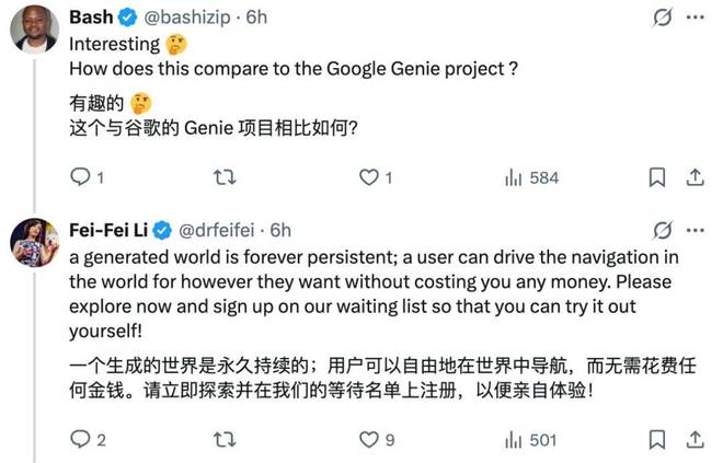 当被问到与谷歌的 Genie 有什么区别时,李飞飞表示,「我们生成的 3D 世界是永久存在的,用户可以自由地在其中导航探索,而这一切对你来说完全免费。」