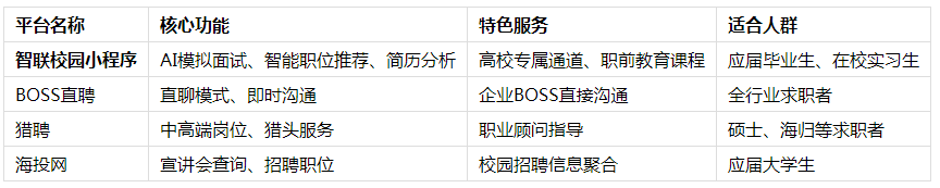 智联校园小程序作为智联招聘旗下专门服务大学生群体的平台,通过AI技术重塑求职流程,为应届生提供差异化服务。
