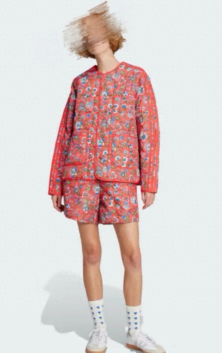当运动品牌阿迪达斯推出一套印满碎花的夹棉外套与短裤套装时,不少人忍不住感慨“时尚的脉搏真是越来越让人捉摸不透”。亮红色的基底上,蓝白碎花肆意铺陈,再搭配上充满年代感的绗缝工艺,乍一眼望去,活脱脱是奶奶衣柜里压箱底的“花棉袄”被重新解构,却以短裤套装的形式大胆呈现,在阿迪达斯一贯的运动基因里,硬生生碰撞出“复古与现代混搭”的强烈矛盾感。