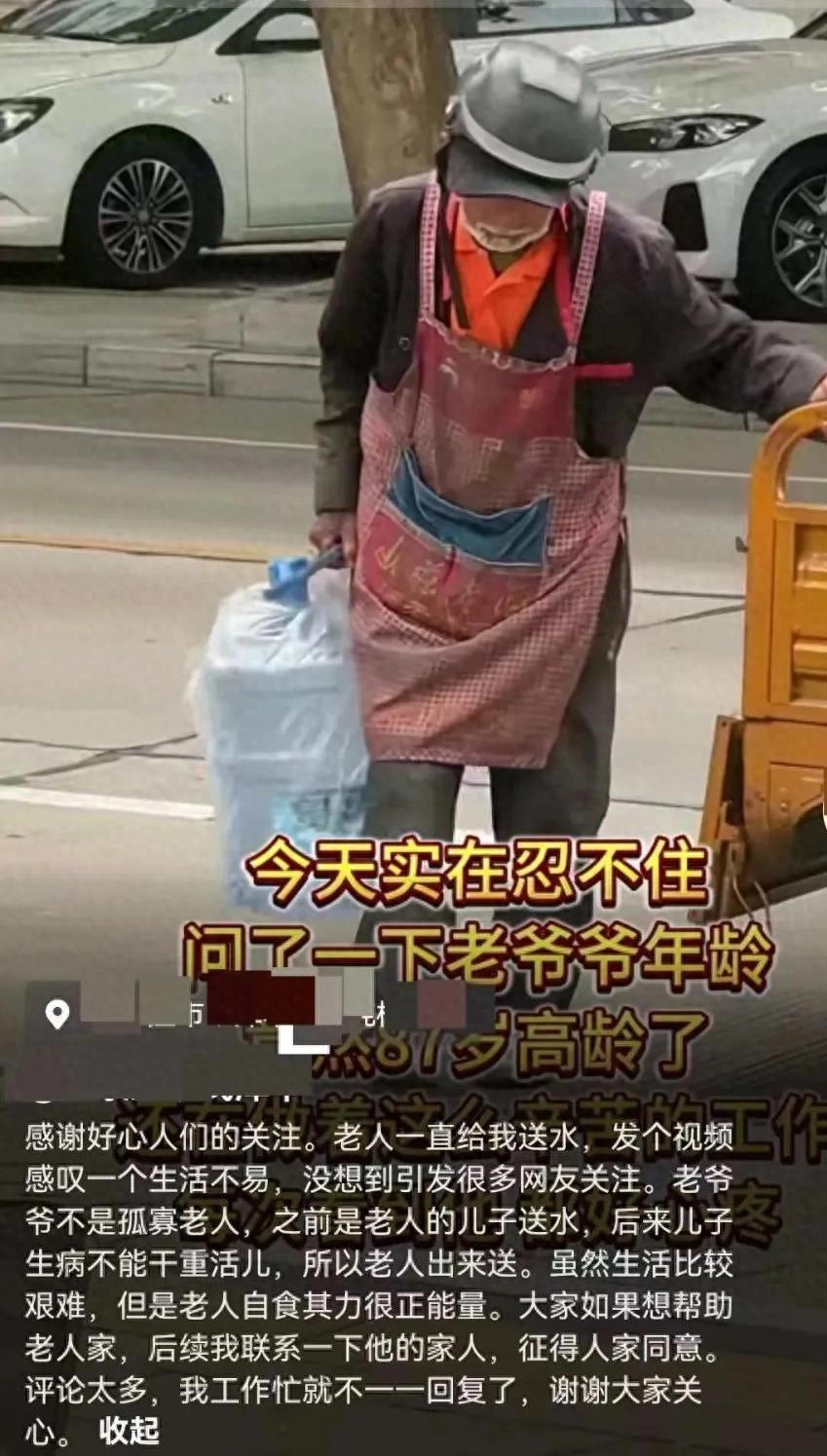 87岁大爷骑三轮送桶装水,网友心疼献爱心,老人一句话让人泪目