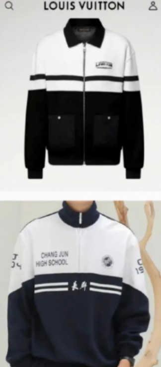 近日,有网友在社交平台发帖,展示了一组对比图:LV一款售价1.6万元的男士大衣与长沙长郡中学的校服在黑白配色、束袖设计上高度相似。