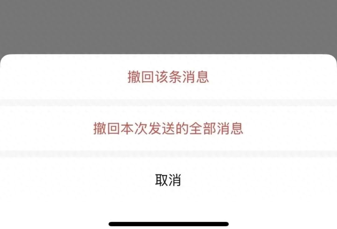 现在,微信可以一次性撤回本次发送的全部消息(包括多选转发、批量发送的图片视频和文件)。以前,一条条撤回,匆匆忙忙连滚带爬;现在,一次性撤回,从从容容游刃有余。