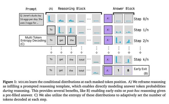 为了回答这个问题,研究者探究了如何将这些计算资源重新利用为有意义的推理与采样能力。他们证明,MDLM 提供了对所有掩码位置的条件分布的访问权限,并具备填充(in-filling)能力,这一特性解锁了传统 NTP 模型无法轻易实现的新型采样与后训练(post-training)机制。