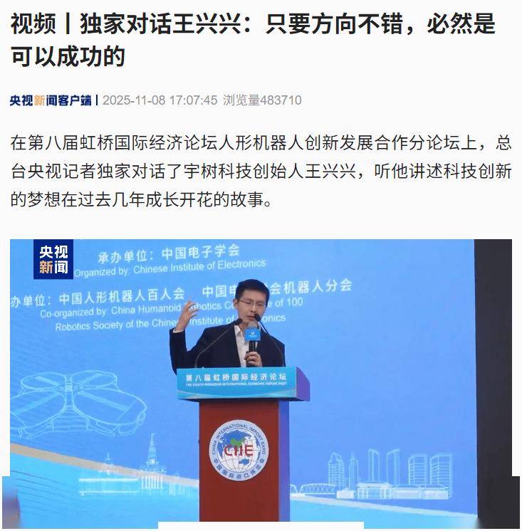 家 11 月 9 日消息,据央视新闻昨日报道,在第八届虹桥国际经济论坛人形机器人创新发展合作分论坛上,总台央视记者独家对话了宇树科技创始人王兴兴。