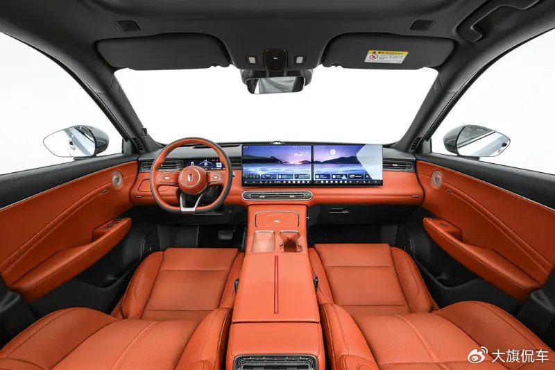 走进车内,红旗HS6 PHEV采用了全新的内饰设计风格,简约平直的仪表台采用上下分层式设计,通过不同材质以及颜色的应用,形成丰富的层次感,小尺寸镶嵌式液晶仪表配合双15.6英寸中控车机+副驾娱乐屏所组成的双联屏,对于整车内部科技感营造还是较为突出的,同时8295P芯片的加持,也让整车系统操作以及交互表现更加流畅。